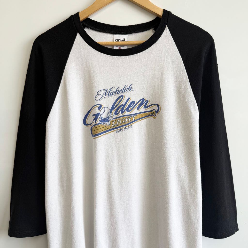 anvil アンビル Michelob Golden Light ミケロブゴールデンライト draft beer ビール ラグラン 七分袖 ロンT 白×黒 XLサイズ No.Y803