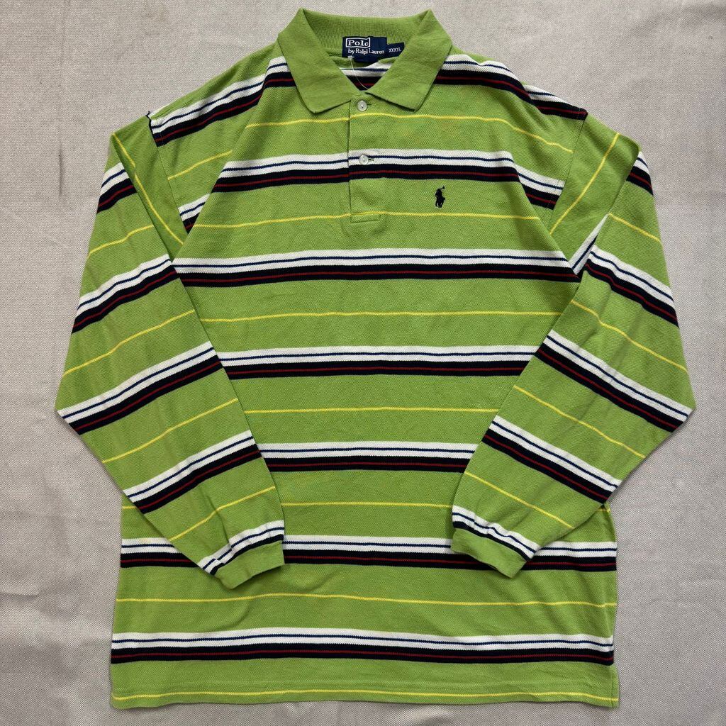 Polo by Ralph Lauren ポロ ラルフローレン ボーダー柄 ポロシャツ 長袖 黄緑×白×紺× 赤 No.E523