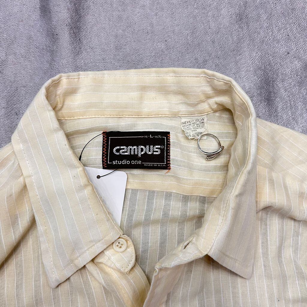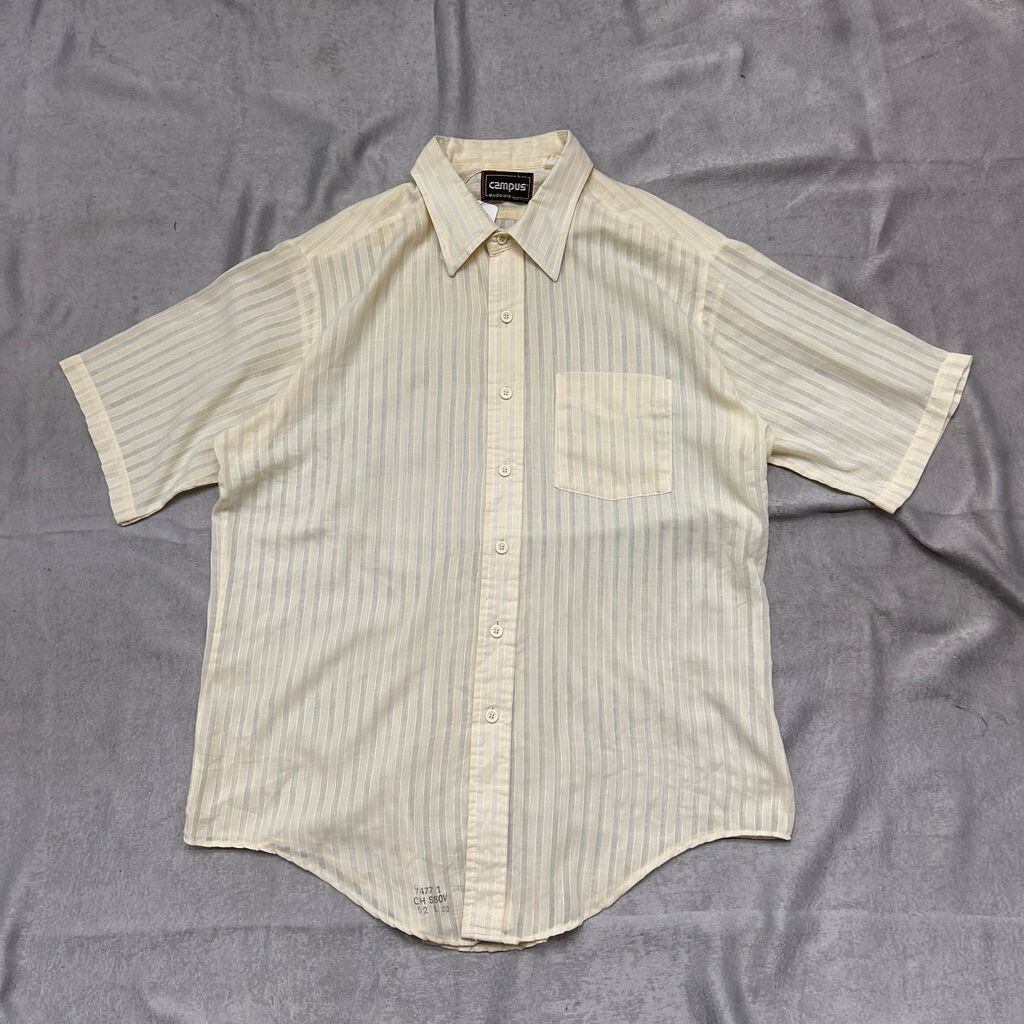 campus キャンパス USA製 半袖シャツ 黄色×白 yellow×white SIZE L No.T018