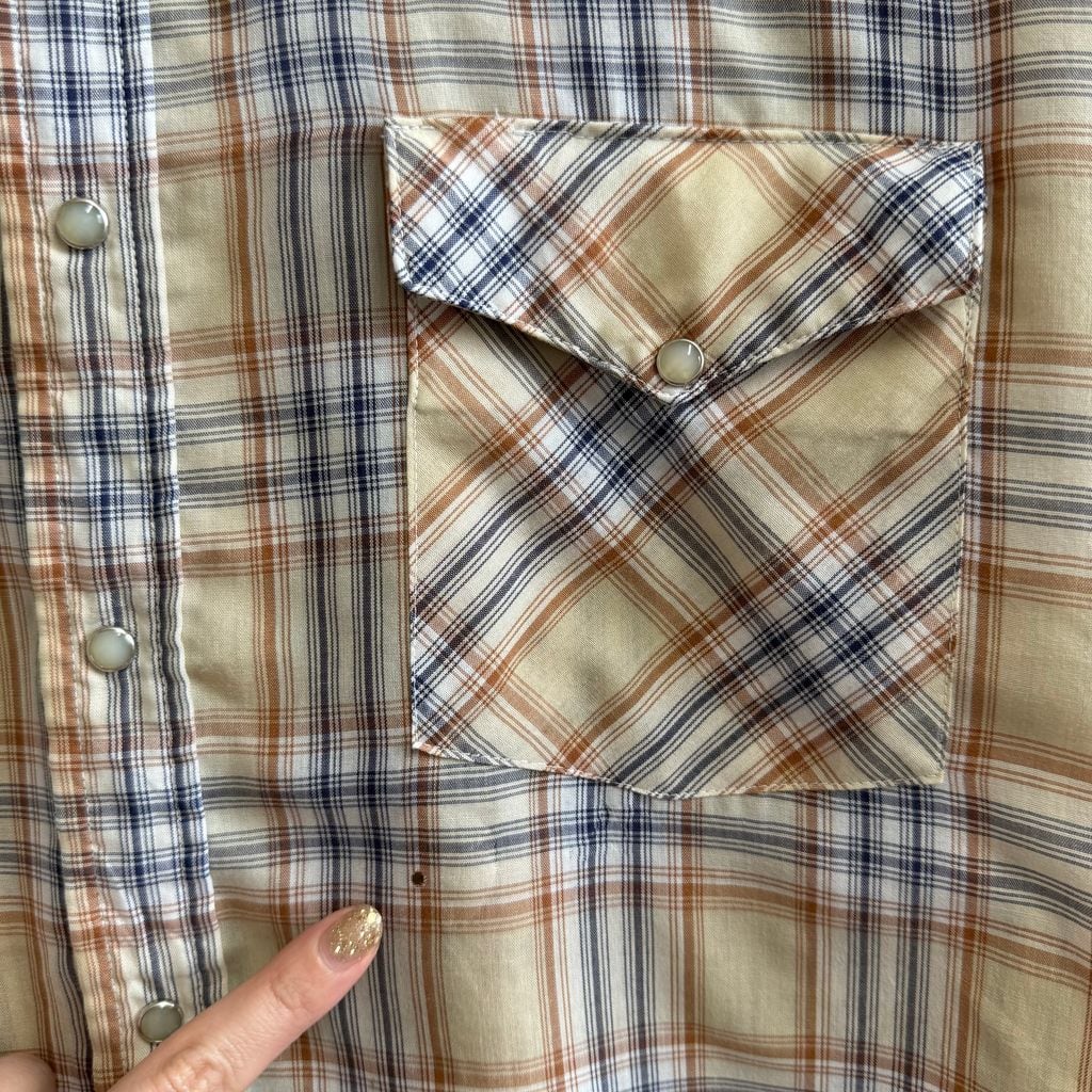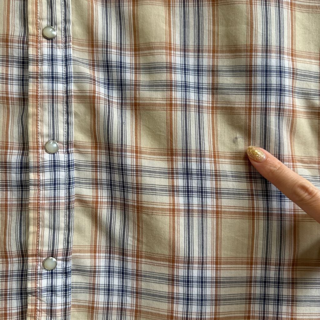 USA製 EXPRESS RIDERS ウエスタンシャツ チェック柄 ポケット付き 長袖シャツ スナップボタン ベージュ×茶×白×紺 2XLサイズ No.Y831