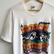 〜90's USA製 FRUIT OF THE LOOM フルーツオブザルーム bowling ボウリング フロントプリント AGAINST DYSTROPHY シングルステッチ 半袖Tシャツ 白 XLサイズ No.Y843