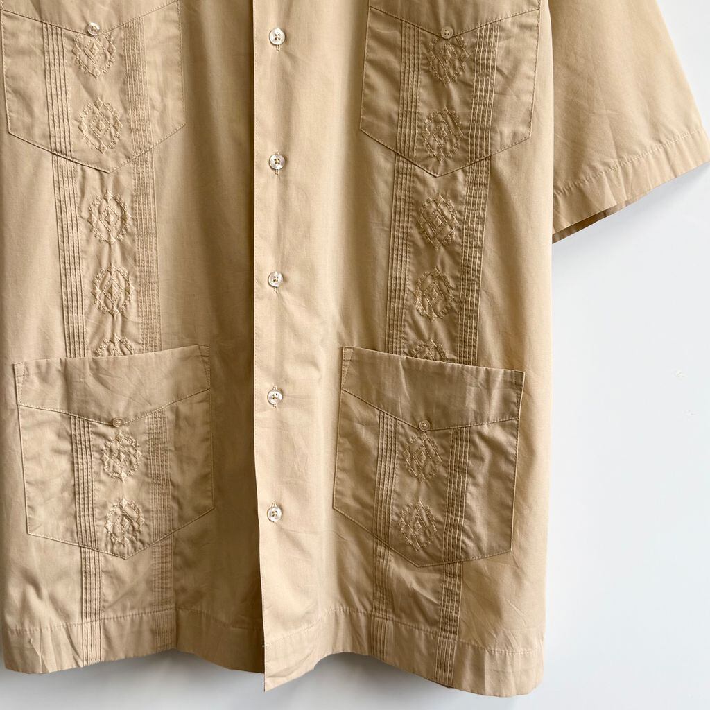 HAVANERA キューバシャツ 刺繍 ポケット付き オープンカラー 開襟シャツ 半袖シャツ ベージュ XLサイズ No.Y852