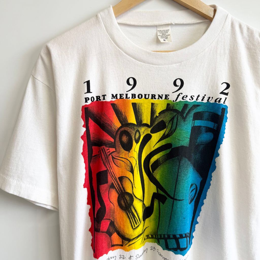 1992 port Melbourne festival ポートメルボルン フェスティバル シングルステッチ 半袖Tシャツ 白 Mサイズ No.Y880