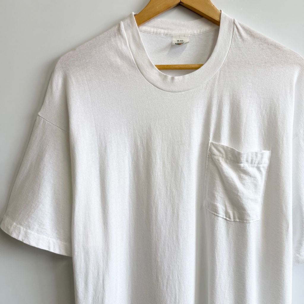 USA製 FRUIT OF THE LOOM フルーツオブザルーム 無地 胸ポケット付き コットン シングルステッチ 半袖Tシャツ 白 ホワイト XXLサイズ No.Y914