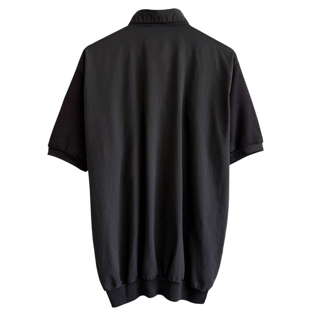 Boulevard Club プルオーバー ハーフボタン 切り替えデザイン ストライプ×無地 デザインシャツ 半袖シャツ 黒系 XLTサイズ No.Y938
