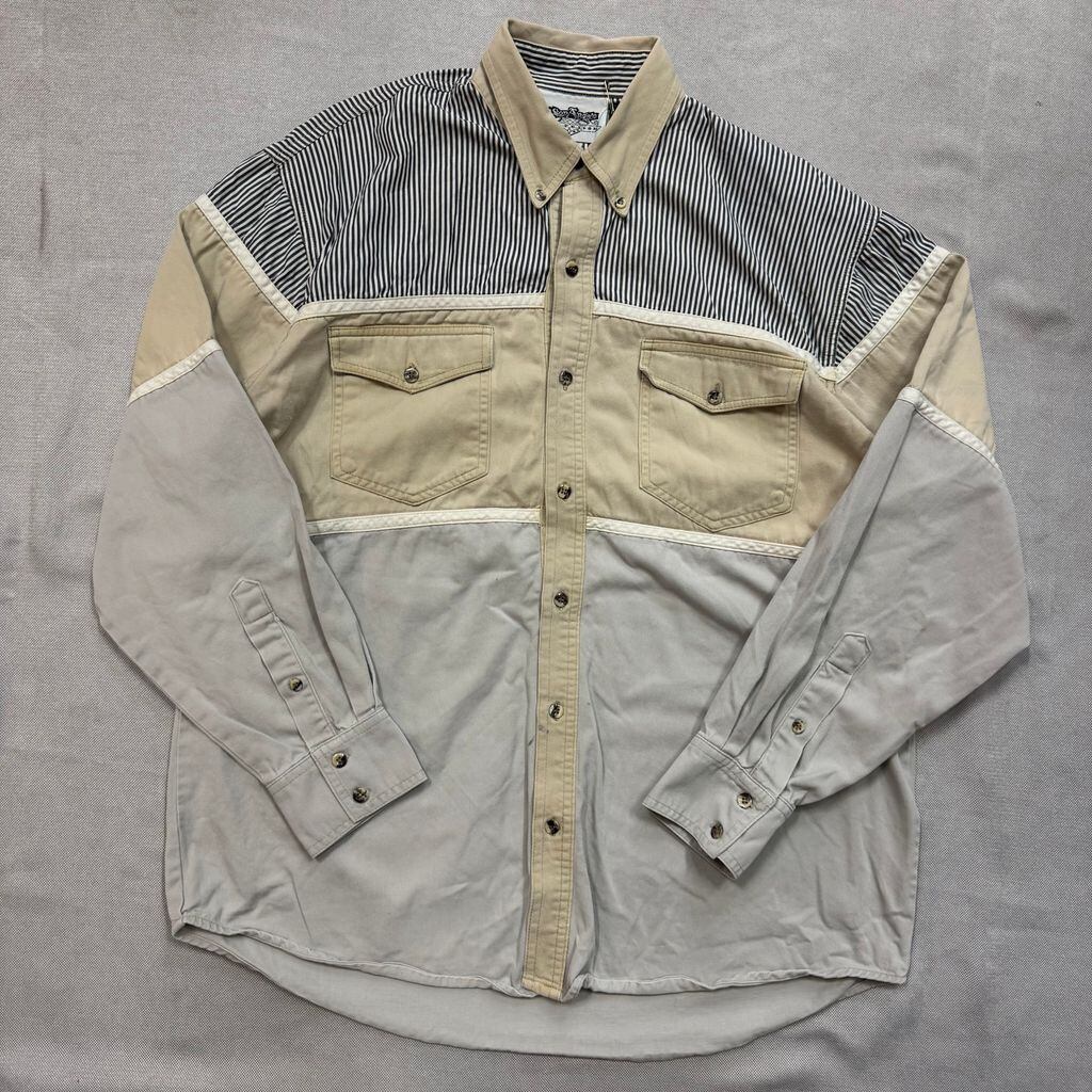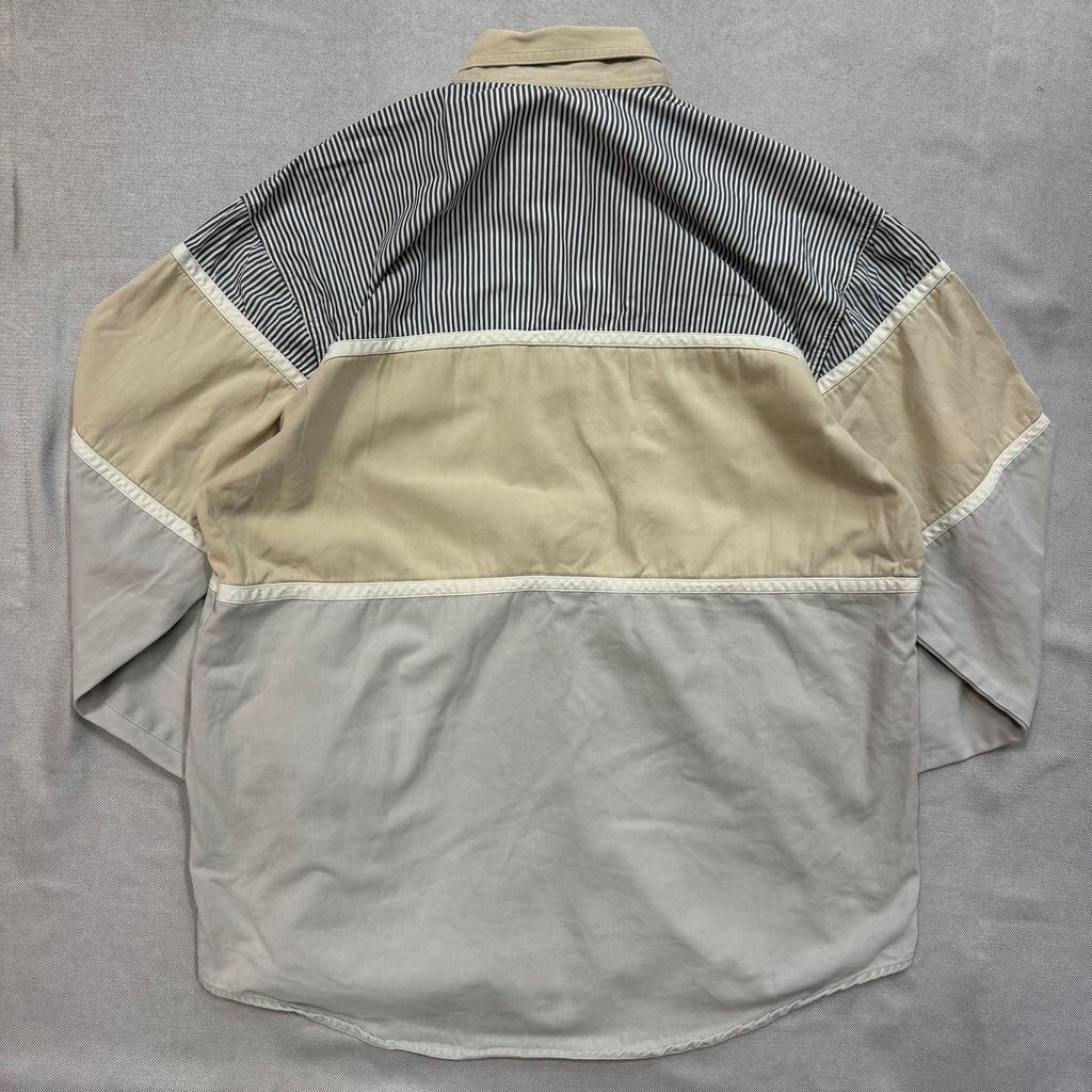 TAXAS ボタンダウン 切り替え ストライプ柄 長袖シャツ ベージュ×グレー No.E547