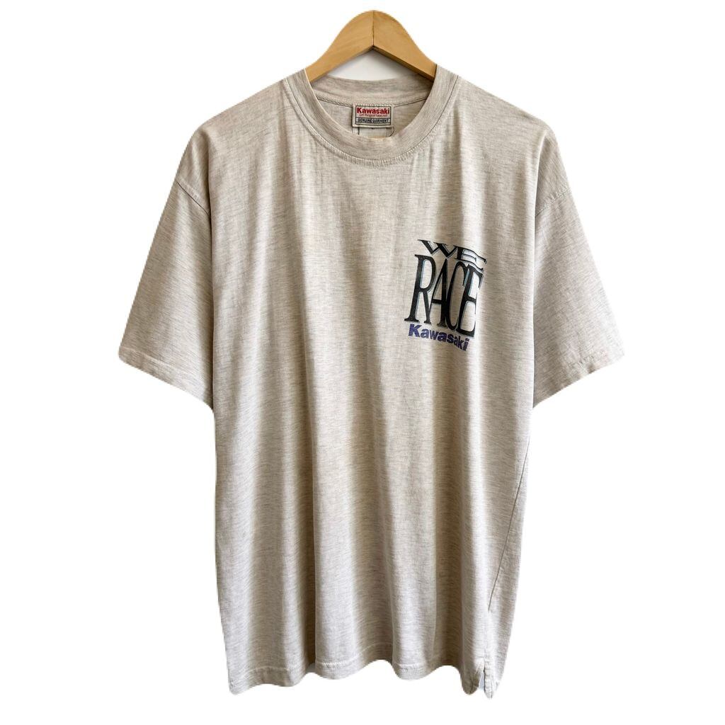 Kawasaki カワサキ WE RACE モトクロスバイク 両面プリント 半袖Tシャツ ライトグレー Lサイズ No.Y976