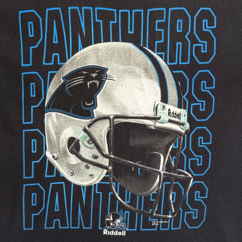 90's USA製 Riddell フロントプリント PANTHERS カロライナパンサーズ NFLP アメフト シングルステッチ 半袖Tシャツ 黒 XLサイズ No.Y994
