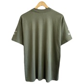 USA製 FRUIT OF THE LOOM フルーツオブザルーム LEAP INTO SCIENCE アート 3面プリント シングルステッチ 半袖Tシャツ カーキ Lサイズ No.Y995