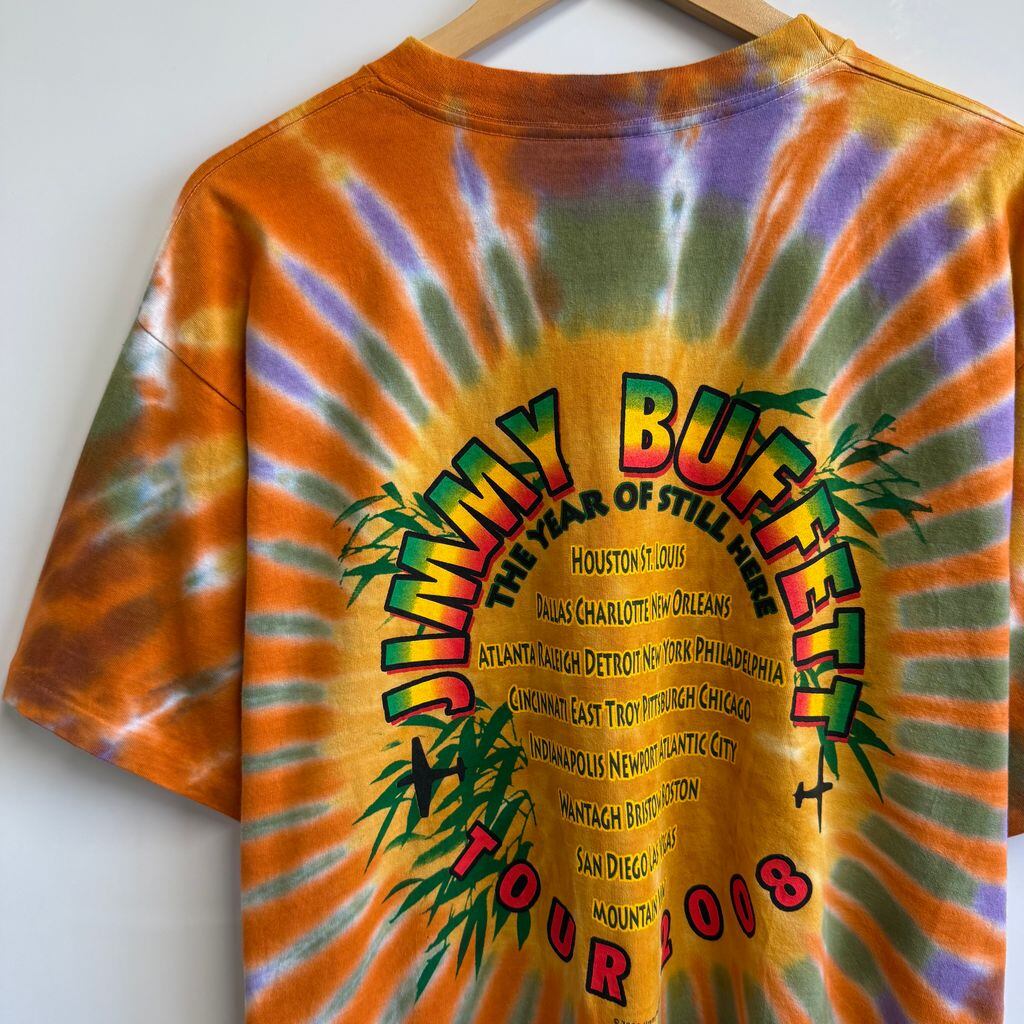 USA製 Alore アローレ タイダイ柄 Jimmy Buffett ジミーバフェット TOUR 2008 シングルステッチ 半袖Tシャツ オレンジ×多色 Lサイズ No.Y997