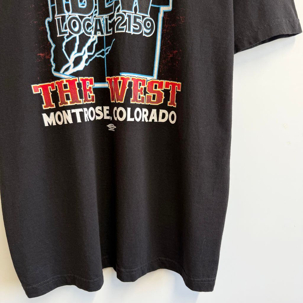USA製 UNION MADE 両面プリント LOCAL 2159 バックプリント POWERING 胸ポケット付き 半袖Tシャツ 黒 XLサイズ No.G002