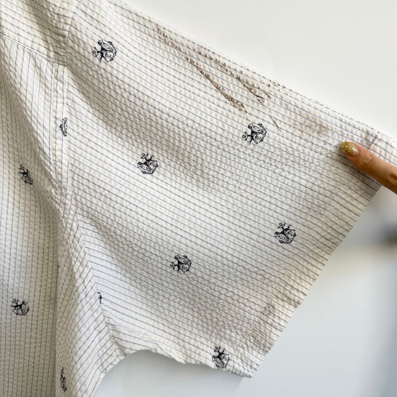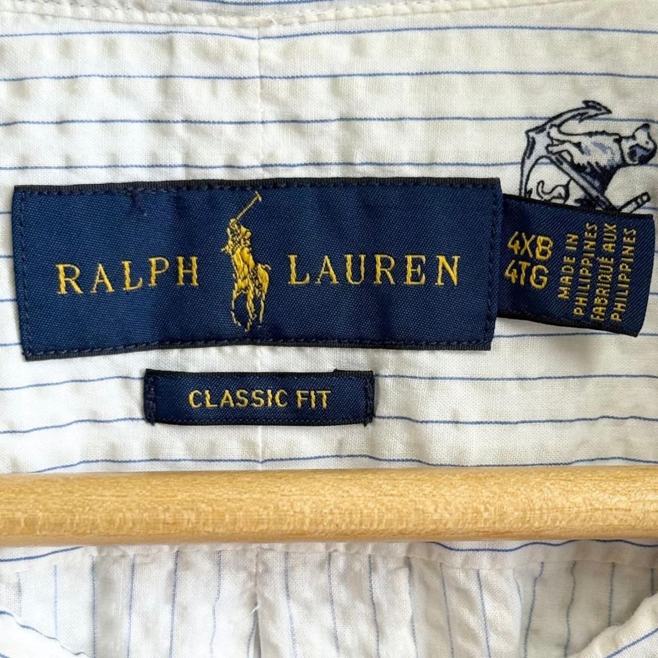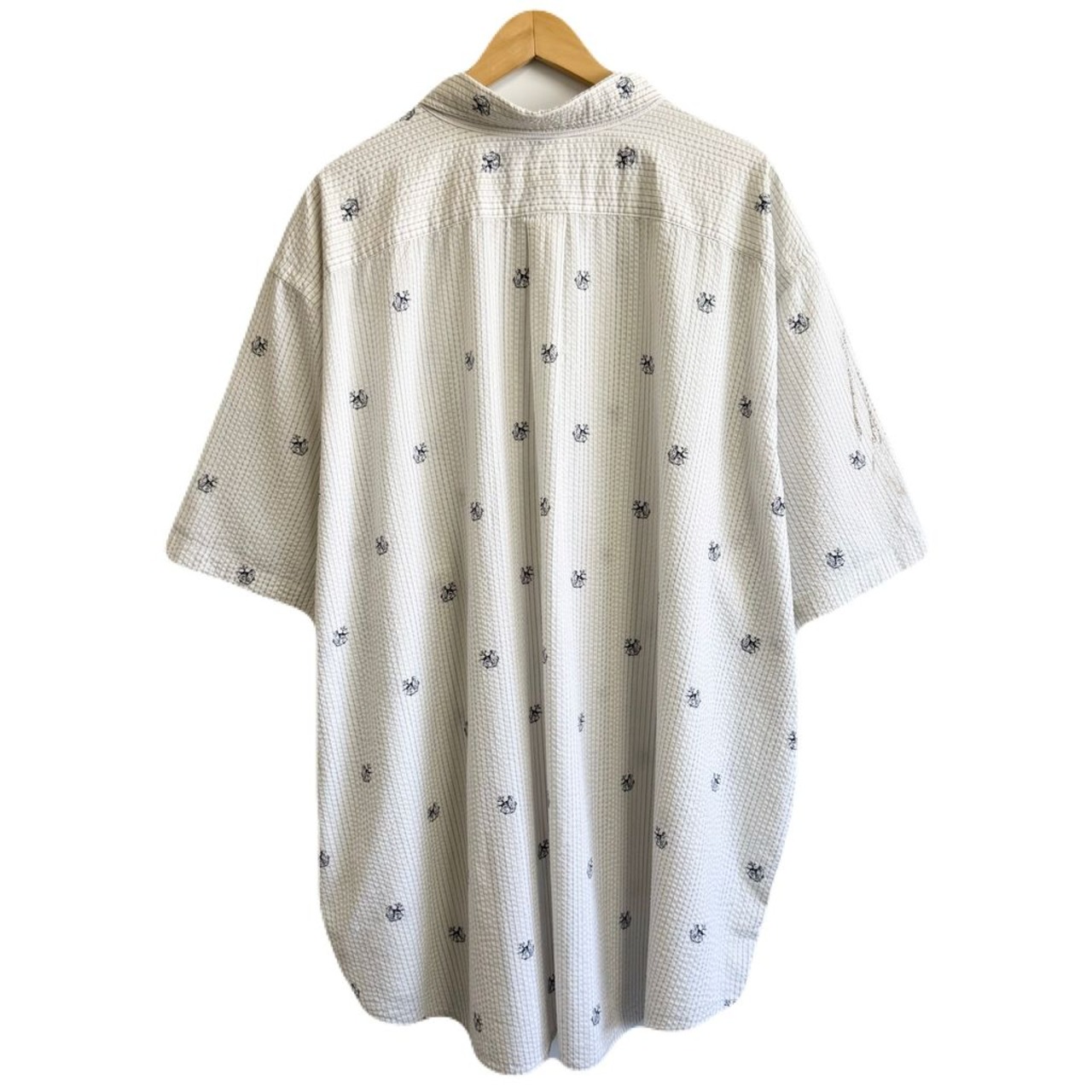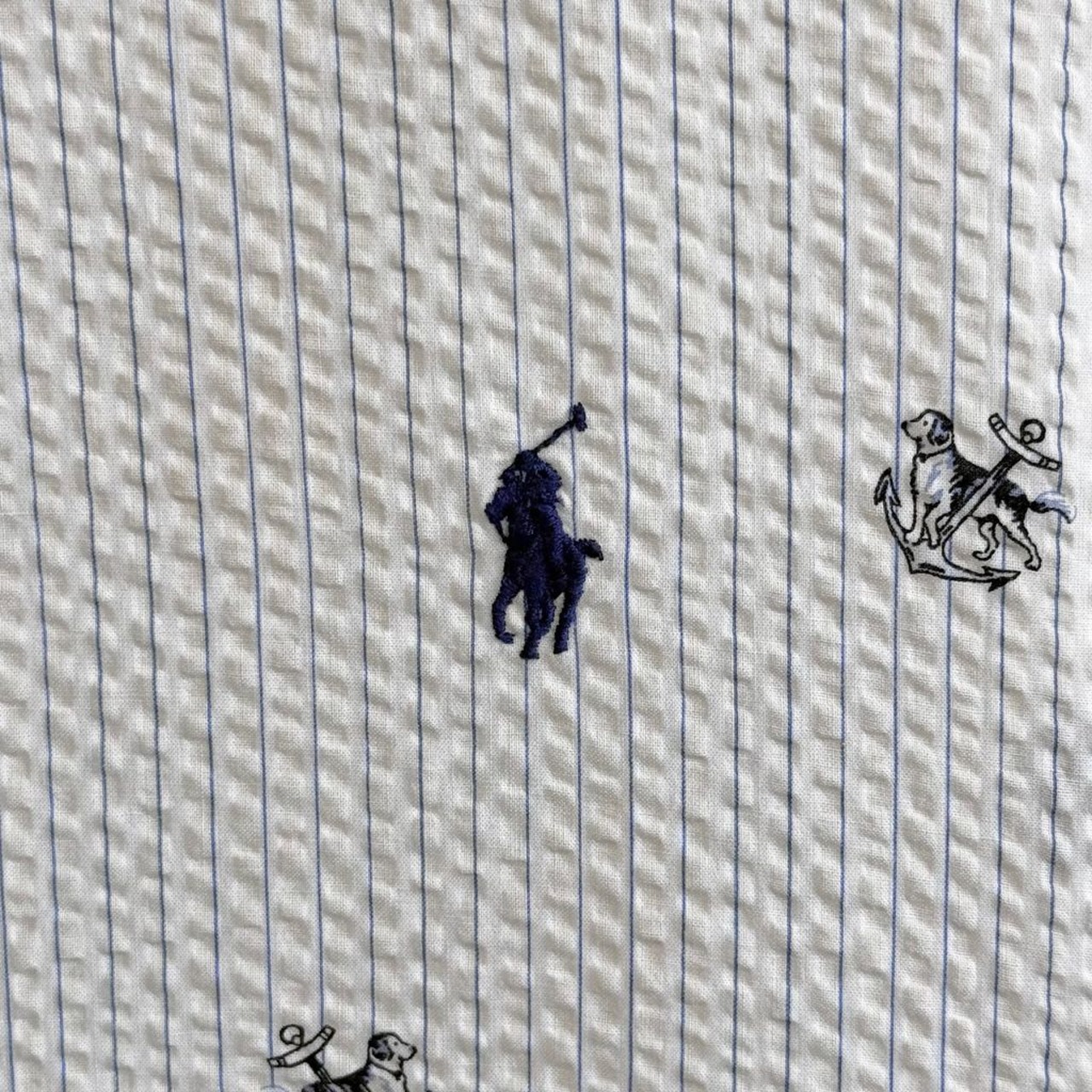 Ralph Lauren ラルフローレン CLASSIC FIT シアサッカー 犬 dog 灯 ボタンダウンシャツ コットンシャツ ストライプ 半袖シャツ ワンポイントロゴ 刺繍 白×青 4XBサイズ No.G008