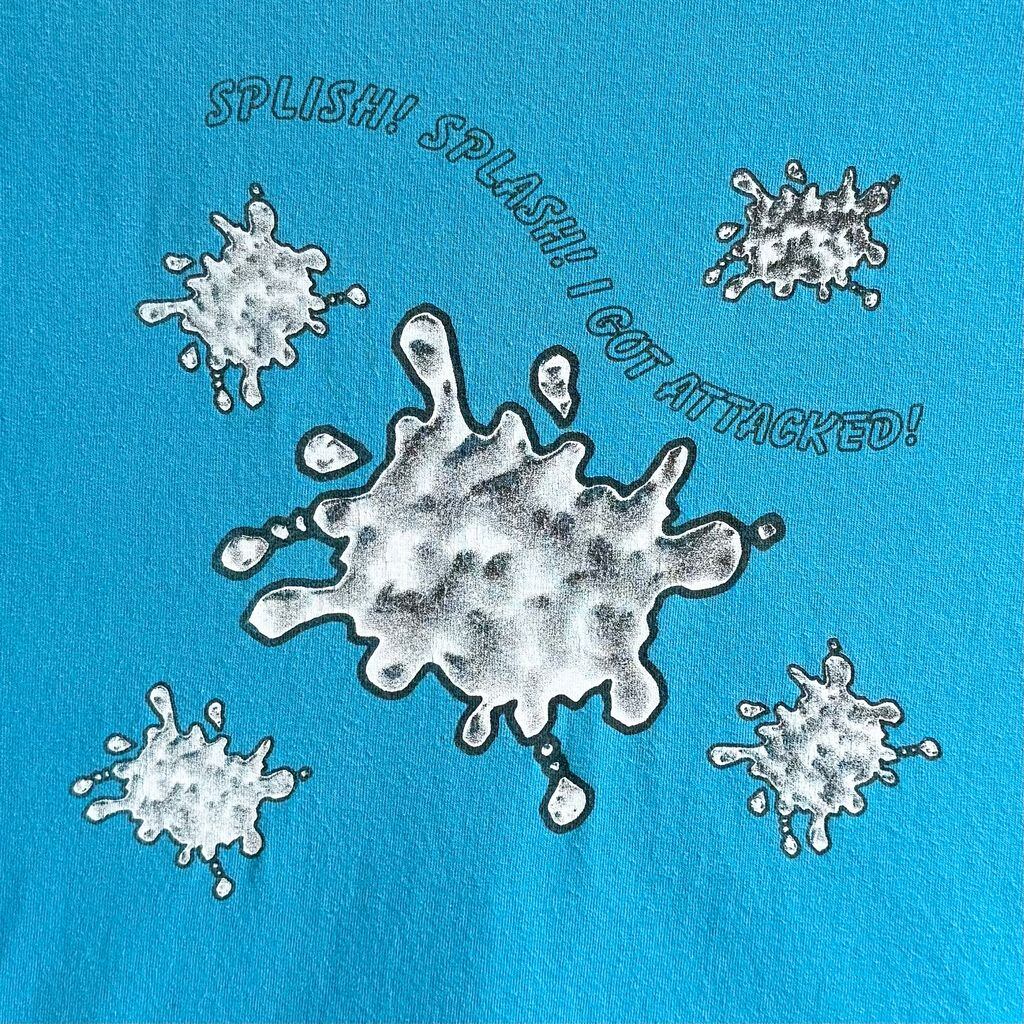 00's GILDAN ギルダン 両面プリント バックプリント SPLASH メッセージプリント 半袖Tシャツ 水色 2XLサイズ No.G013