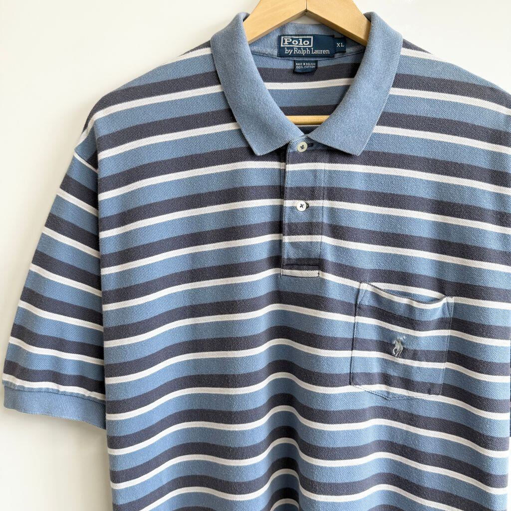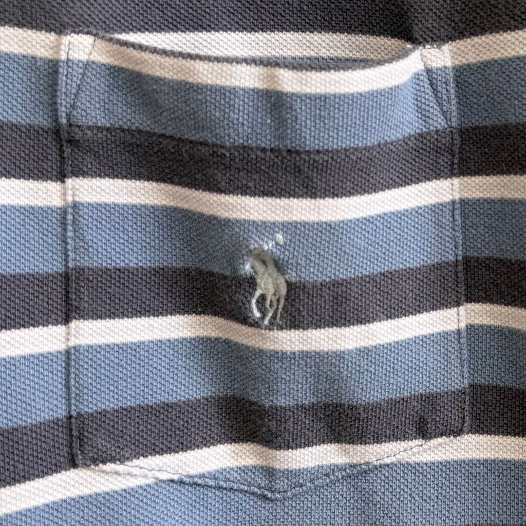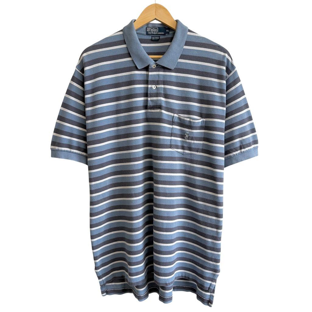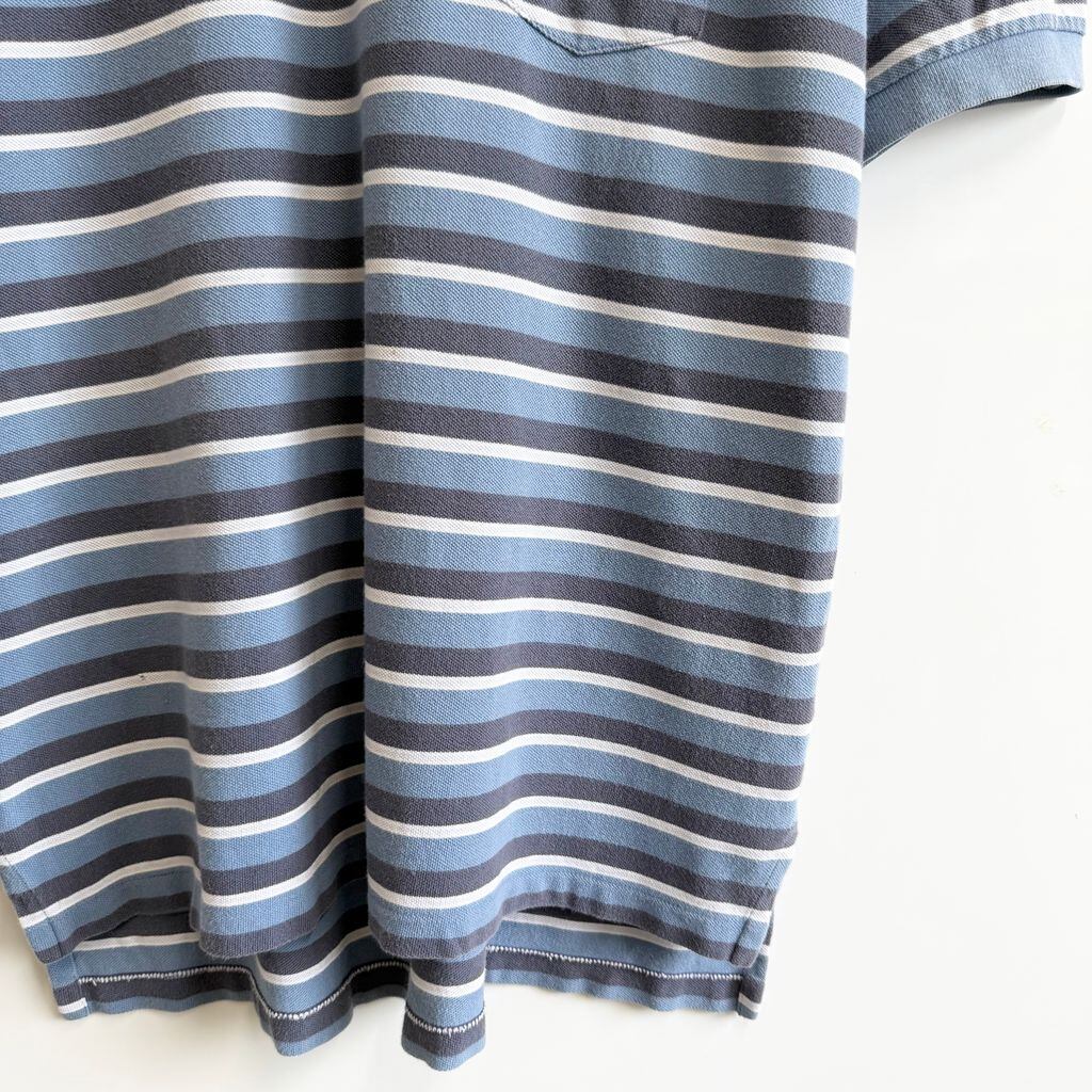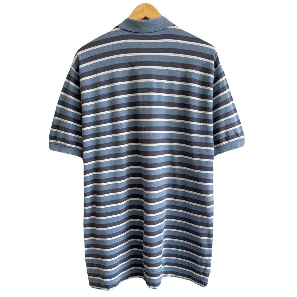 POLO RALPH LAUREN ポロ ラルフローレン ポロシャツ 半袖 ボーダー 胸ポケット付き ワンポイントロゴ 刺繍 水色系×ブルーグレー×白 XLサイズ No.G020