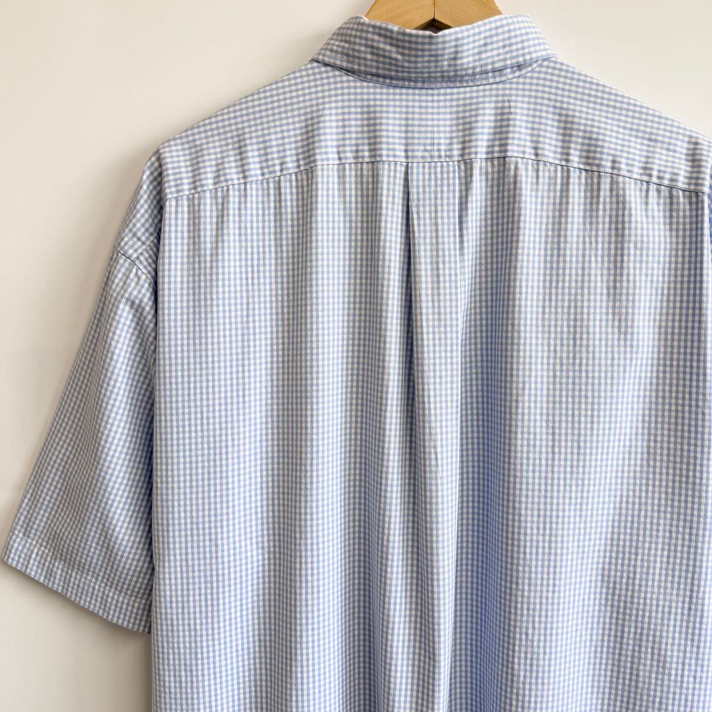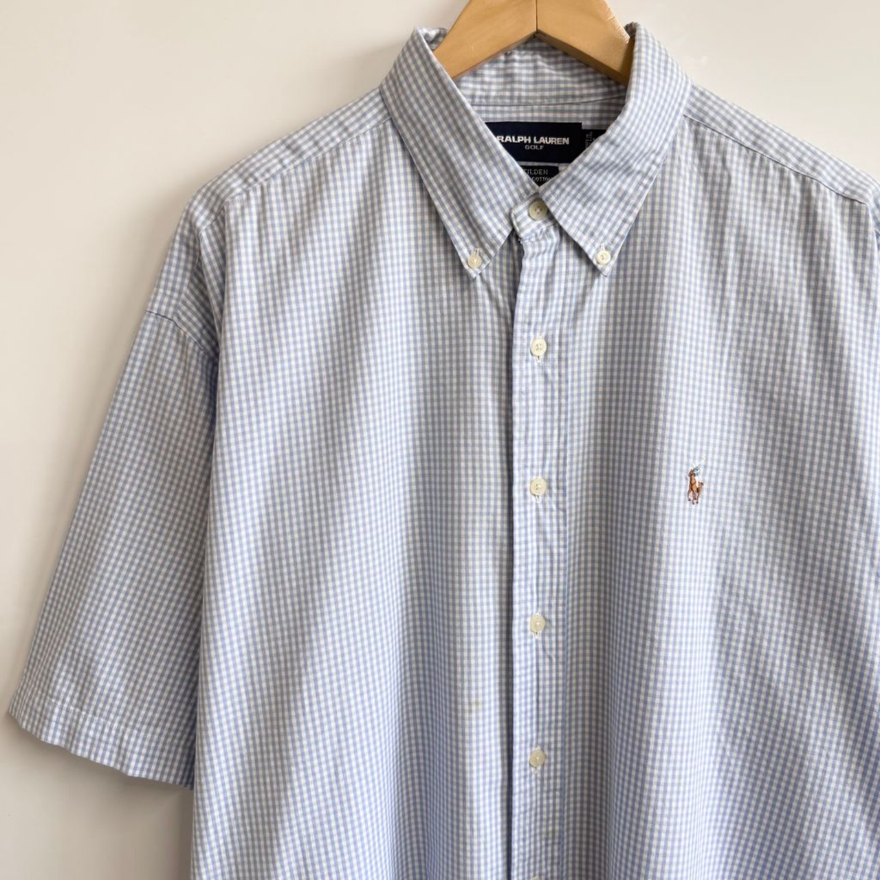 Ralph Lauren ラルフローレン GOLF ゴルフ ボタンダウンシャツ コットンシャツ チェック柄 半袖シャツ ワンポイントロゴ 刺繍 水色×白 XLサイズ No.G035