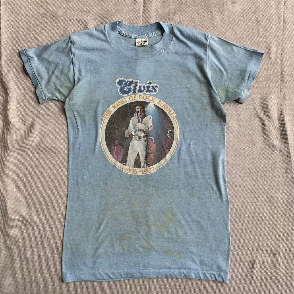 古着 vintage 70s~devknit Elvis エルヴィス エルビス ROCk T ロック Blues ブルース T-Shirt プリント Tシャツ Light Blue ライトブルー 水色 Sサイズ No.I148