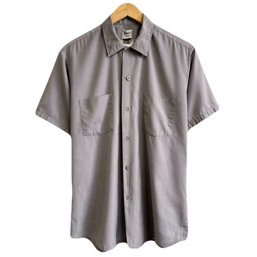 #古着 #古着男子 #古着女子 #ヴィンテージ #ビンテージ #used #vintage #ワークシャツ風 #グレー系 #半袖シャツ #無地