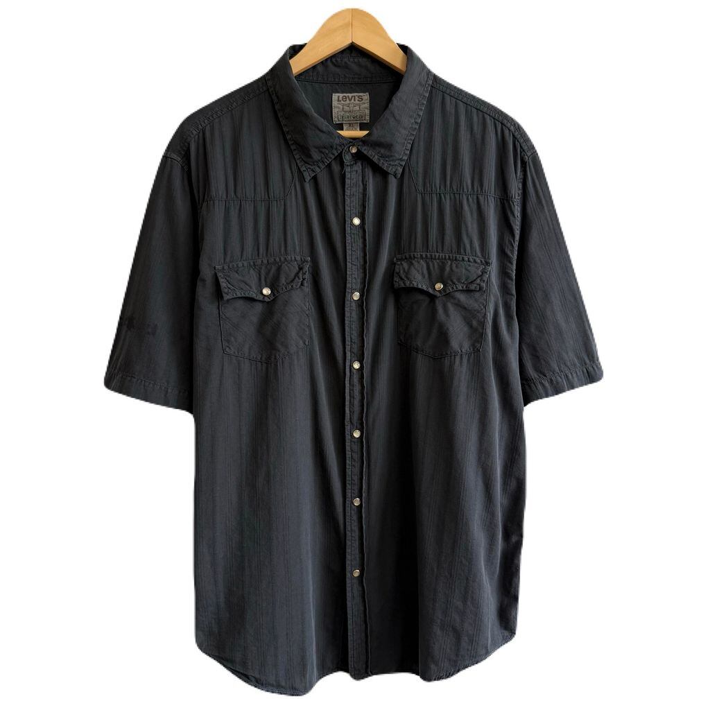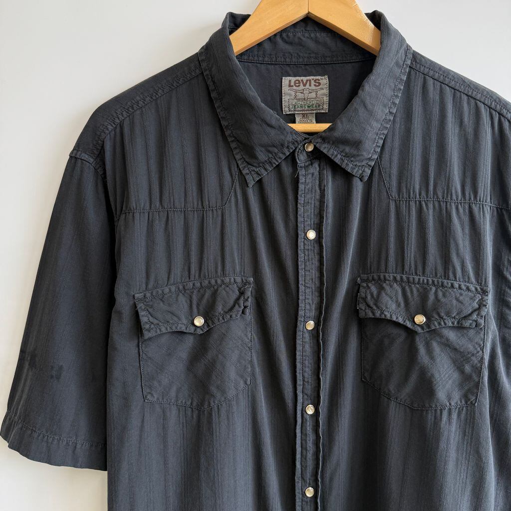 LEVI’S リーバイス ウエスタンシャツ コットンシャツ ストライプ ポケット付き 半袖シャツ スナップボタン 黒 ブラック XLサイズ No.G042