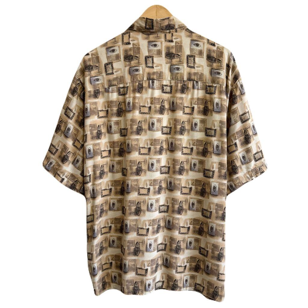 Puritan レーヨンシャツ アート 総柄 柄シャツ デザインシャツ 半袖シャツ 胸ポケット付き 茶×ベージュ×白×多色 Lサイズ No.G077