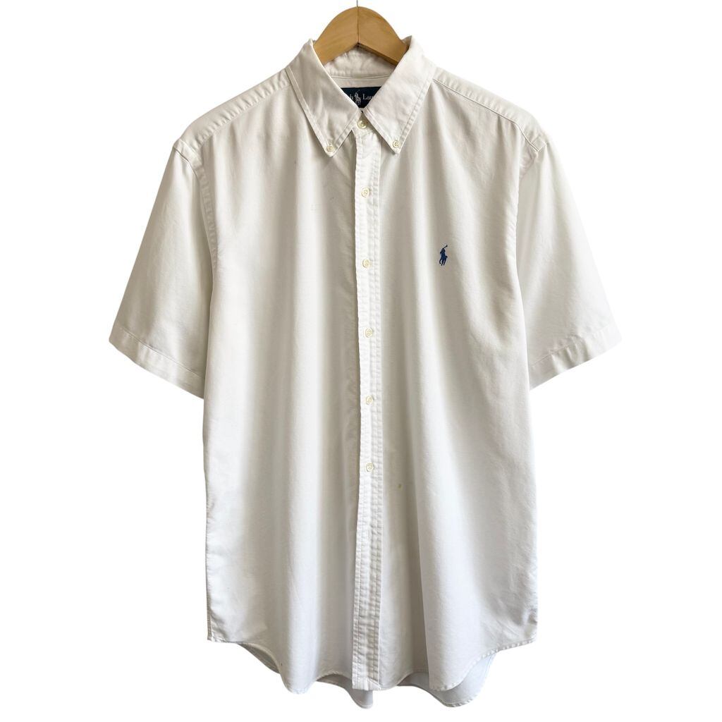 Ralph Lauren ラルフローレン CLASSIC FIT ボタンダウンシャツ コットンシャツ 半袖シャツ ワンポイントロゴ 刺繍 白 ホワイト Lサイズ No.G096