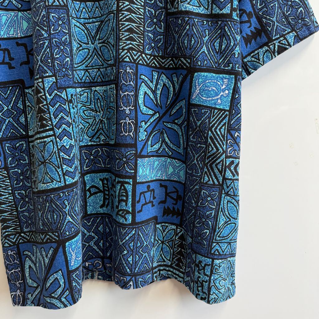 ハワイ製 RTC アロハシャツ ハワイアンシャツ オープンカラー 開襟シャツ 総柄 柄シャツ 半袖シャツ 胸ポケット付き 青×水色×黒 2XLサイズ No.G100