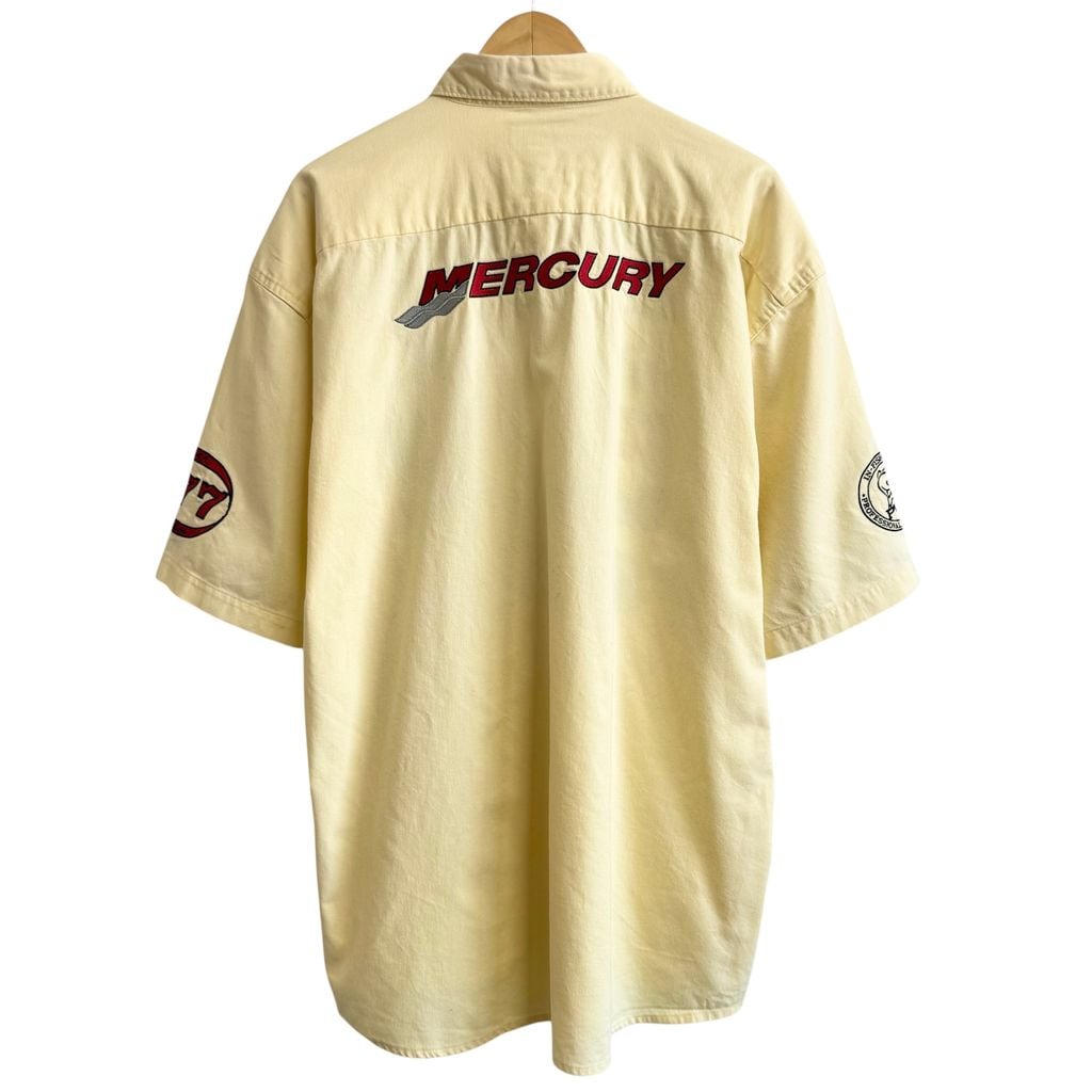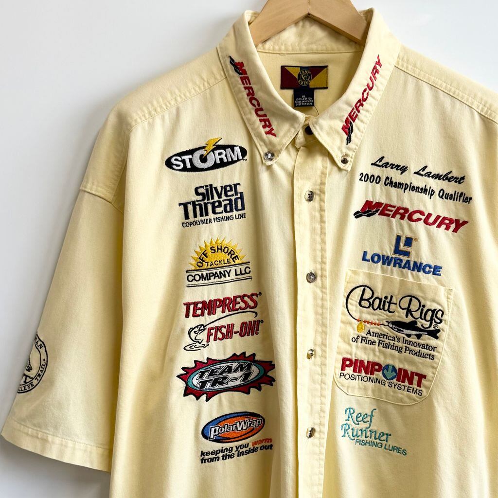 CAMP&CREEK ボタンダウンシャツ MERCURY 魚 fish 刺繍 コットンシャツ ポケット付き 半袖シャツ 黄色 イエロー XLサイズ No.G110