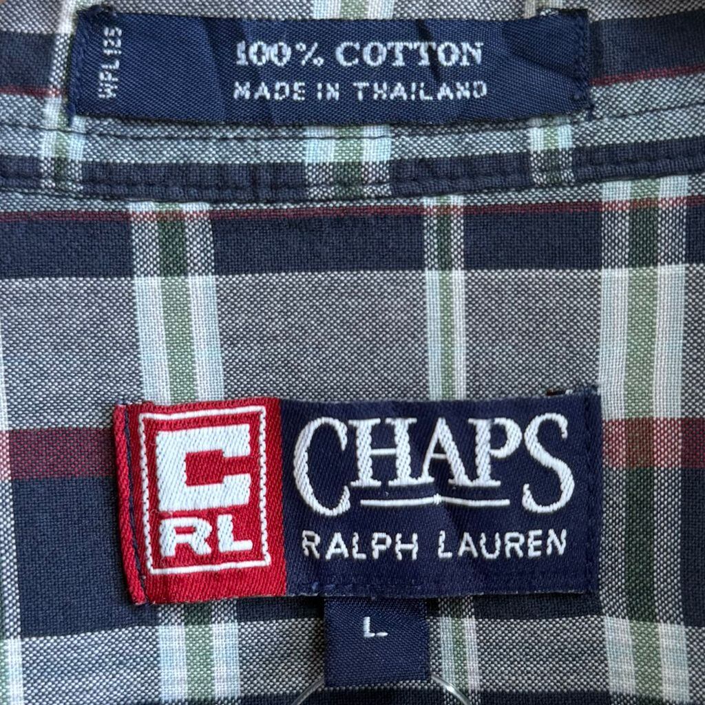 CHAPS チャップス RALPH LAUREN ラルフローレン オープンカラー 開襟シャツ コットンシャツ チェック柄 ポケット付き 半袖シャツ 紺×ワインレッド×黄緑×多色 Lサイズ No.G119