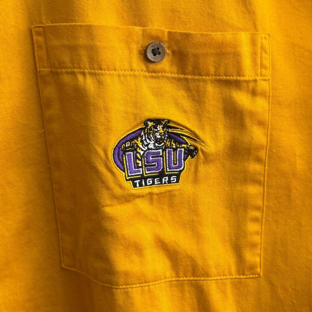 Chiliwear オープンカラー 開襟シャツ LSU Tigers ワンポイントロゴ 刺繍 半袖シャツ バイカラー 黄色×紫 XXLサイズ No.G123