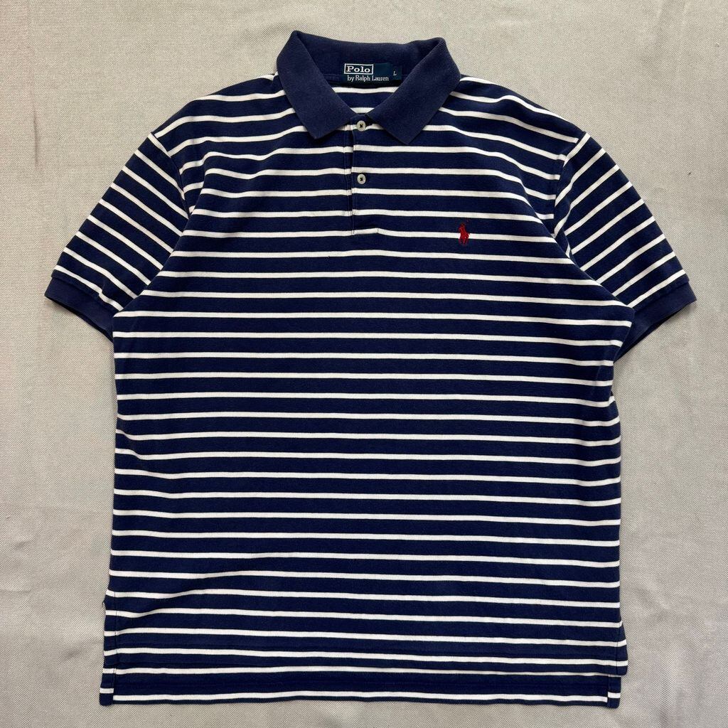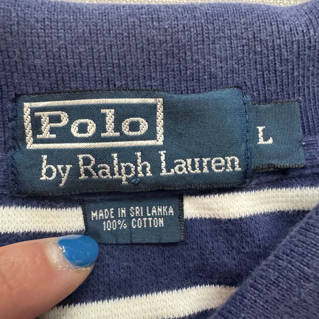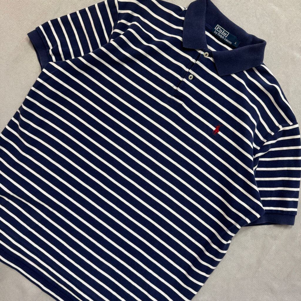 Polo by Ralph Lauren ポロ ラルフローレン ポロシャツ ボーダー 半袖 青×白 Lサイズ No.E571