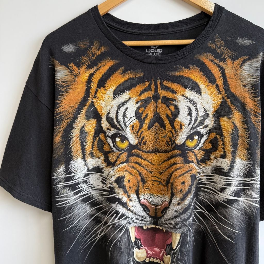 LIQUID BLUE タイガー Tiger トラ アニマルプリント 半袖Tシャツ 黒 ブラック XLサイズ No.G135