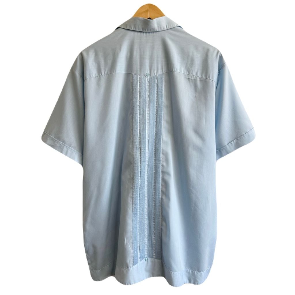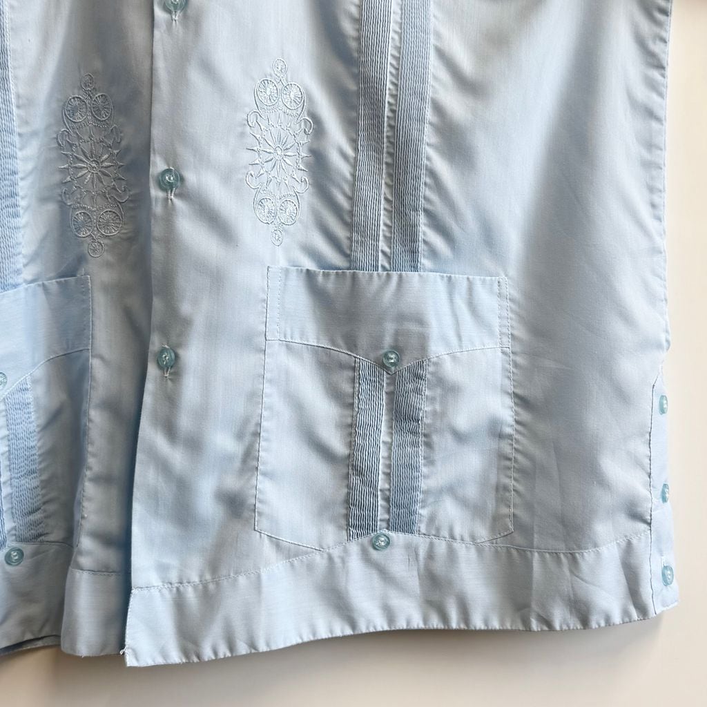 GUAYABERAS YUCATECAS キューバシャツ 刺繍 オープンカラー 開襟シャツ ポケット付き 半袖シャツ 水色 XLサイズ No.G150
