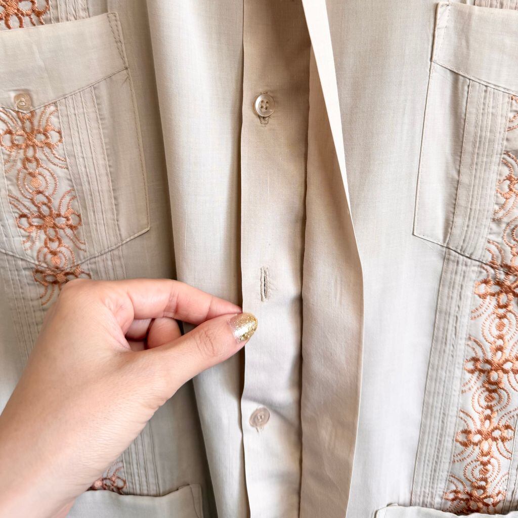 HABANO GUAYABERA キューバシャツ 刺繍 ポケット付き 半袖シャツ ピンクベージュ XLサイズ No.G151