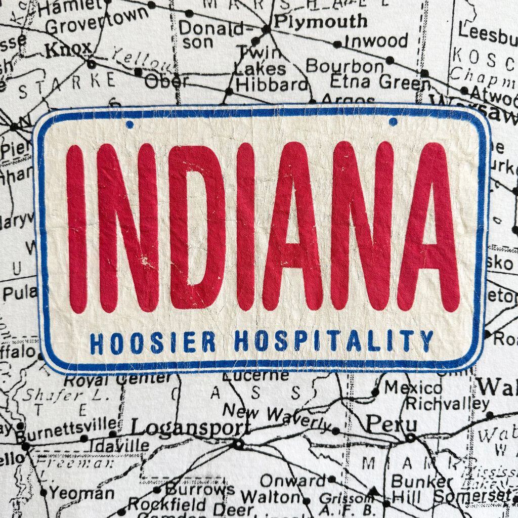 USA製 SUN SPORTSWEAR 地図 MAP インディアナ INDIANA ナンバープレート シングルステッチ 半袖Tシャツ 白×黒 No.G164