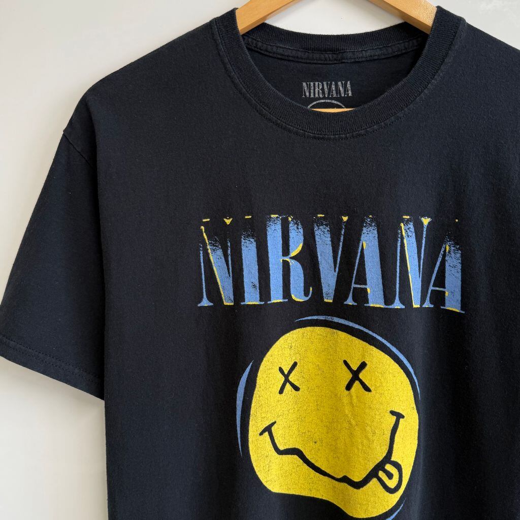 NIRVANA ニルヴァーナ スマイリー フェイス ロック バンドTシャツ 半袖Tシャツ 黒 ブラック Mサイズ No.G170