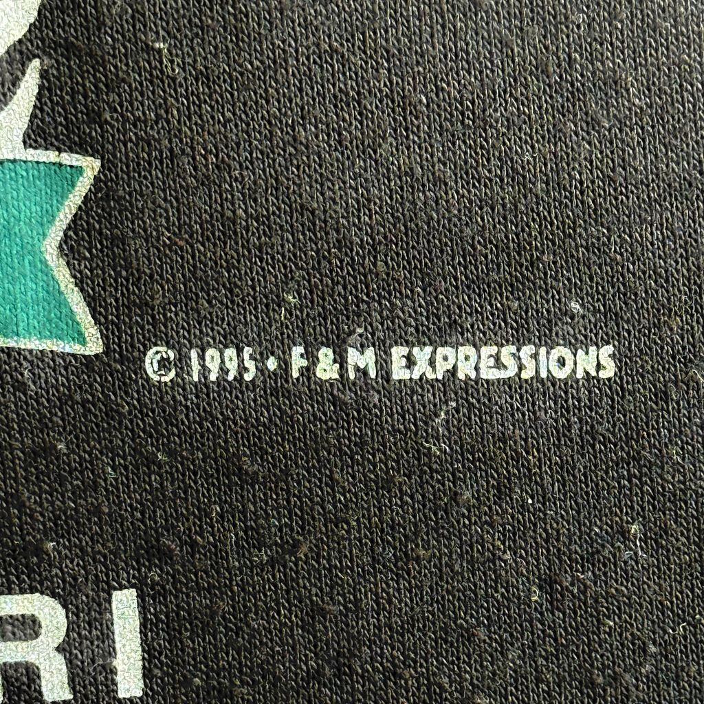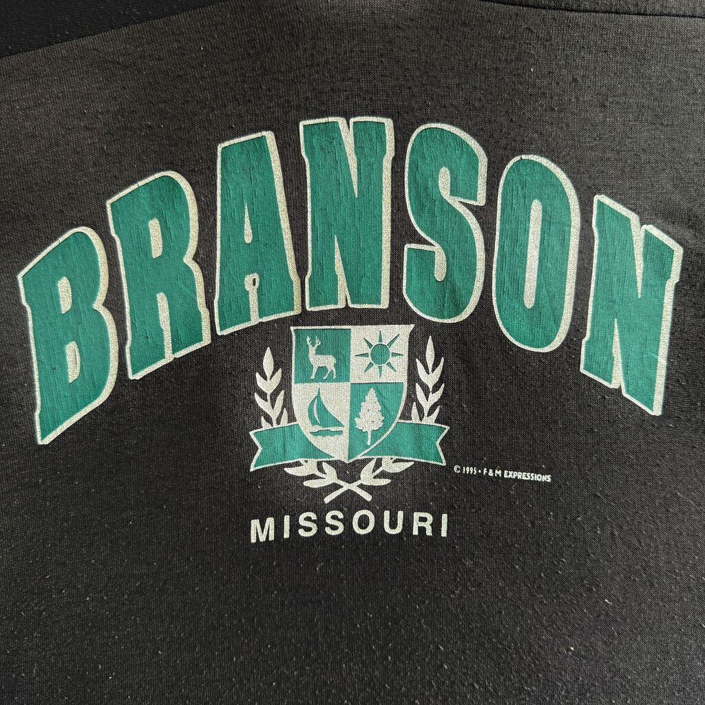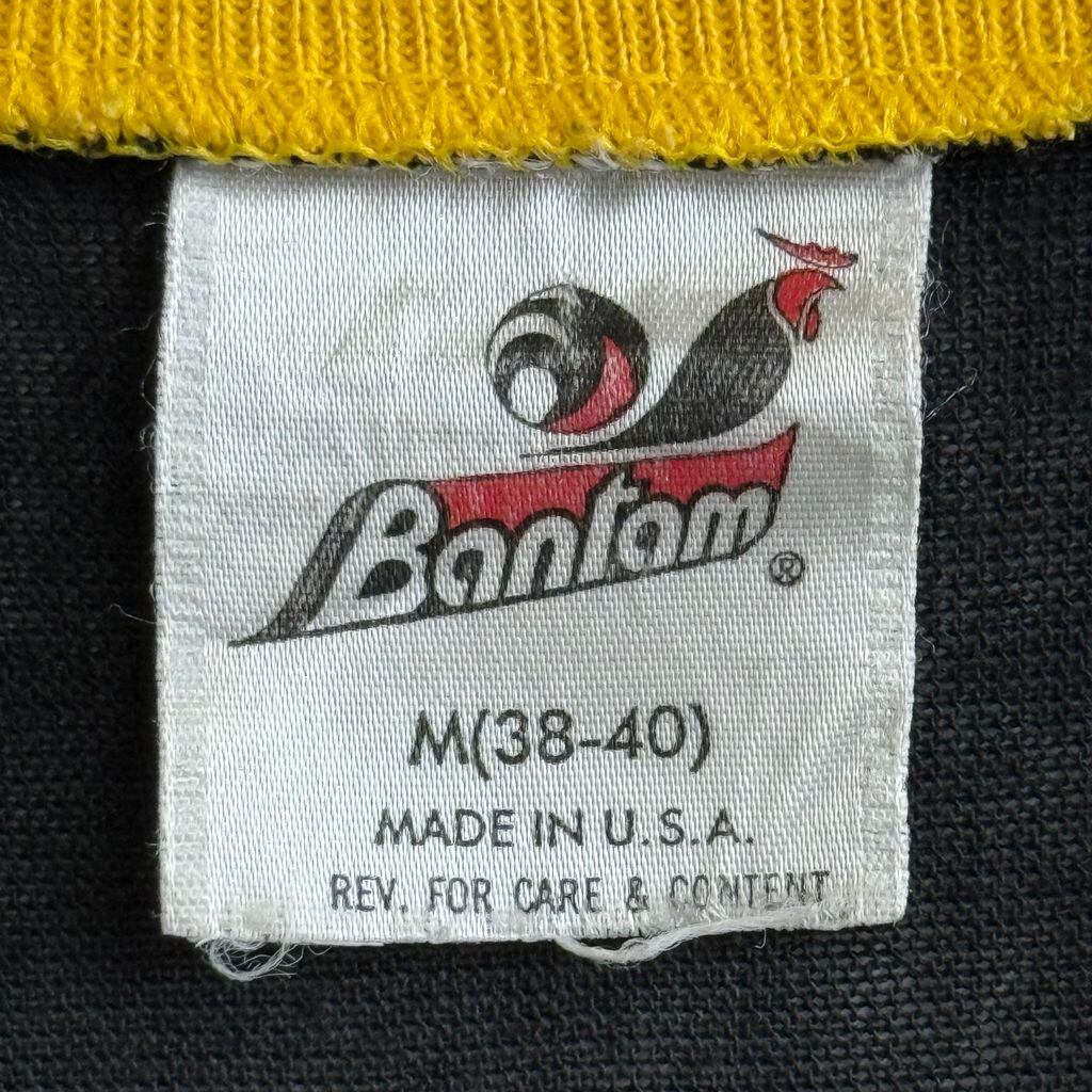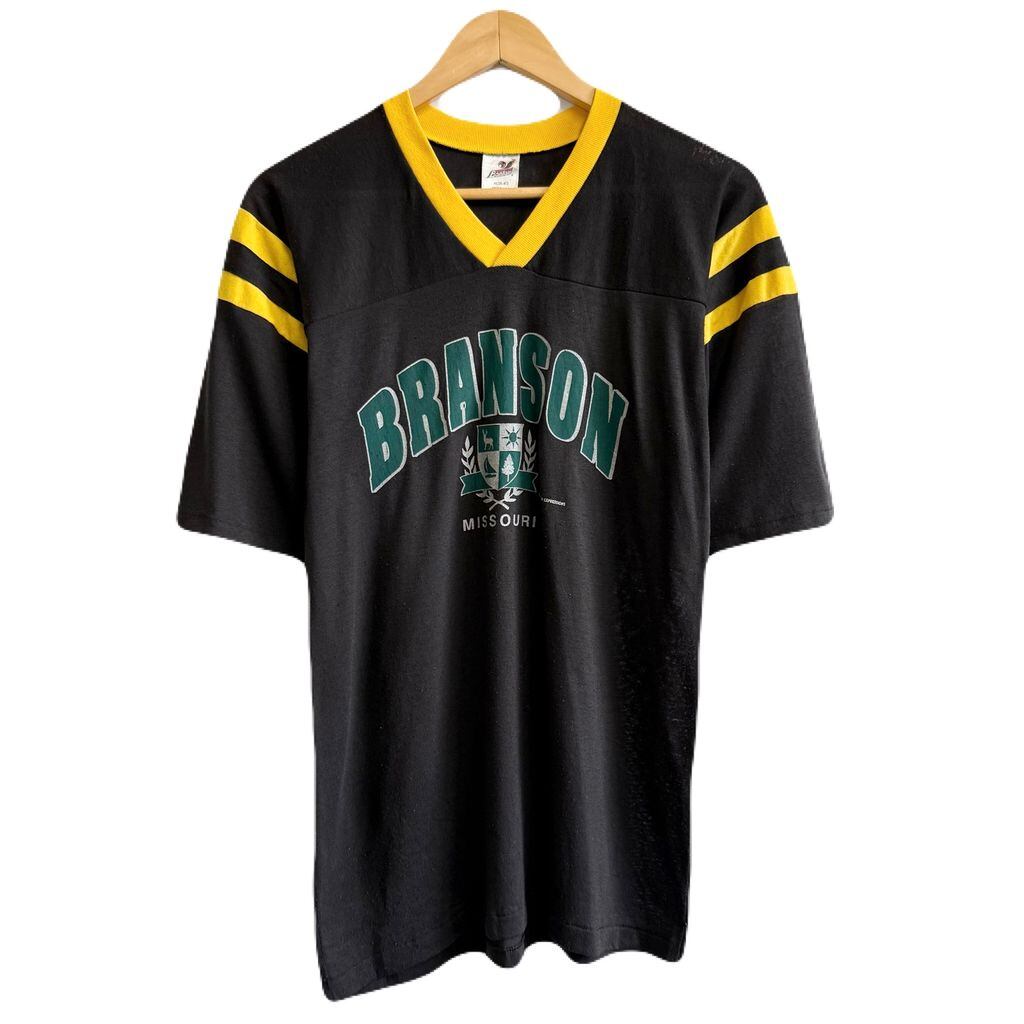 90's USA製 BANTAM バンタム BRANSON ブランソン MISSOURI ミズーリ Vネック ボーダー シングルステッチ 半袖Tシャツ 黒×黄色 Mサイズ No.G174