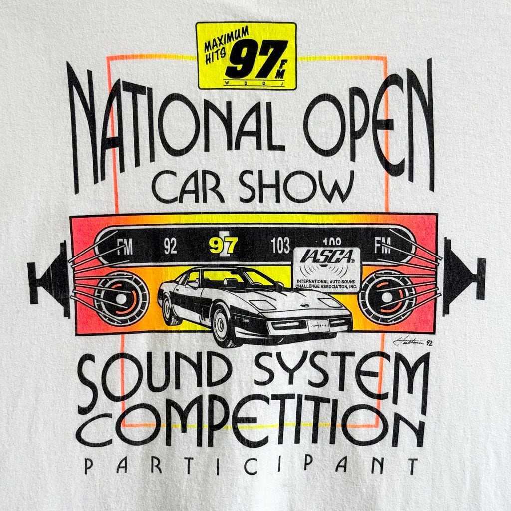 90's USA製 SCREEN STARS スクリーンスターズ 車 car フロントプリント NATIONAL OPEN CAR SHOW シングルステッチ 半袖Tシャツ 白 XLサイズ No.G177