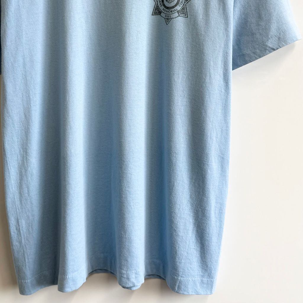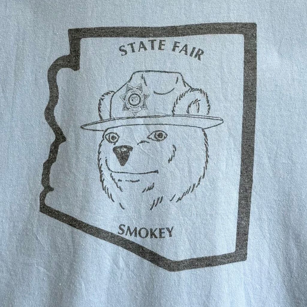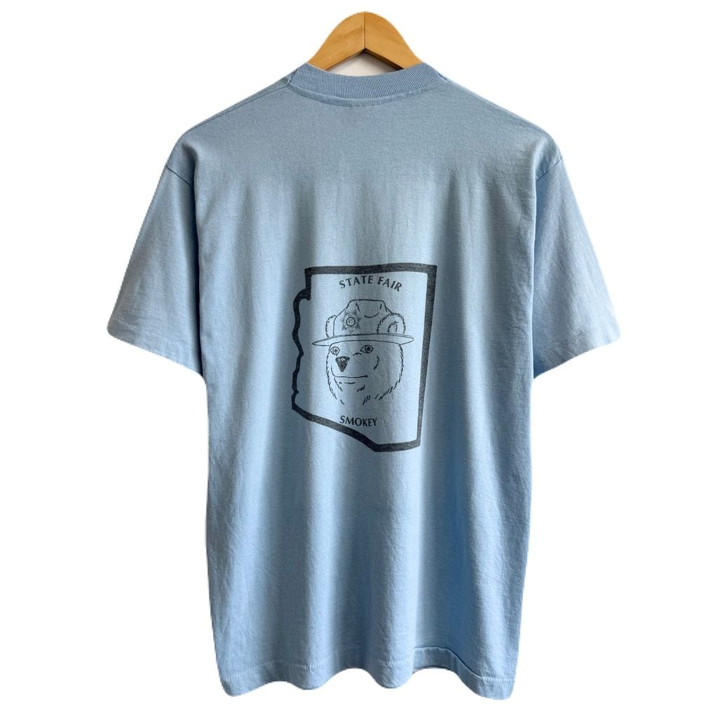 USA製 SCREEN STARS スクリーンスターズ 両面プリント スモーキーベア クマ アニマルプリント ピンバッチ シングルステッチ 半袖Tシャツ 水色 Lサイズ No.G239