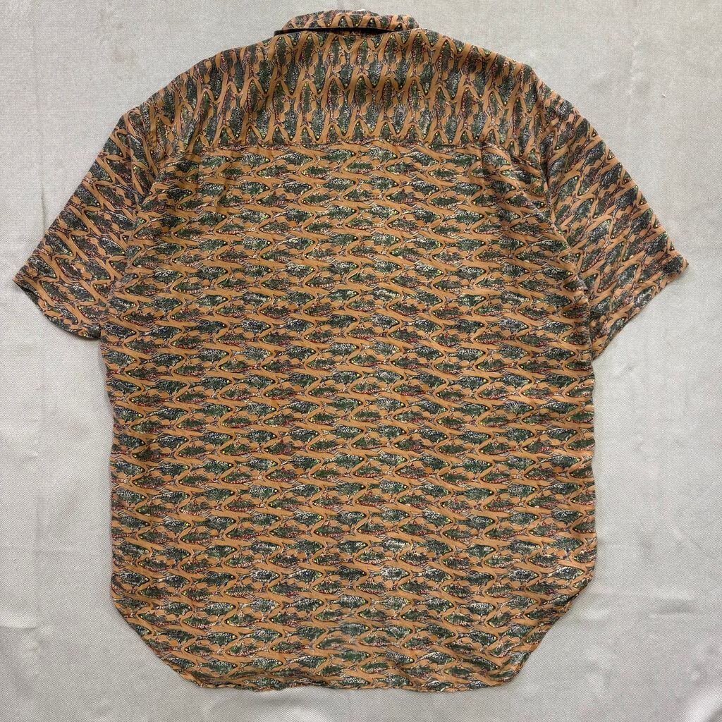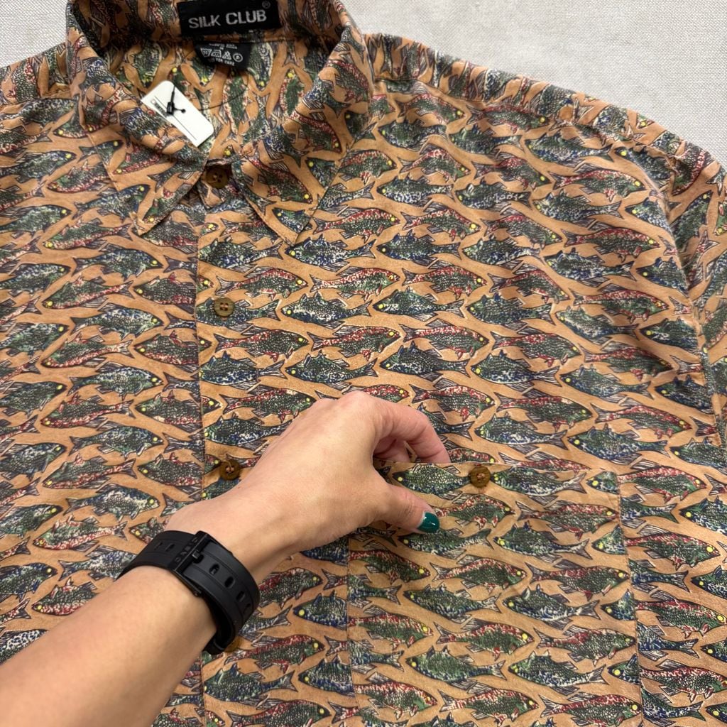 SILK CLUB 100% SILK 魚柄 シルク ポケット付き 半袖シャツ 多色 Mサイズ No.E598