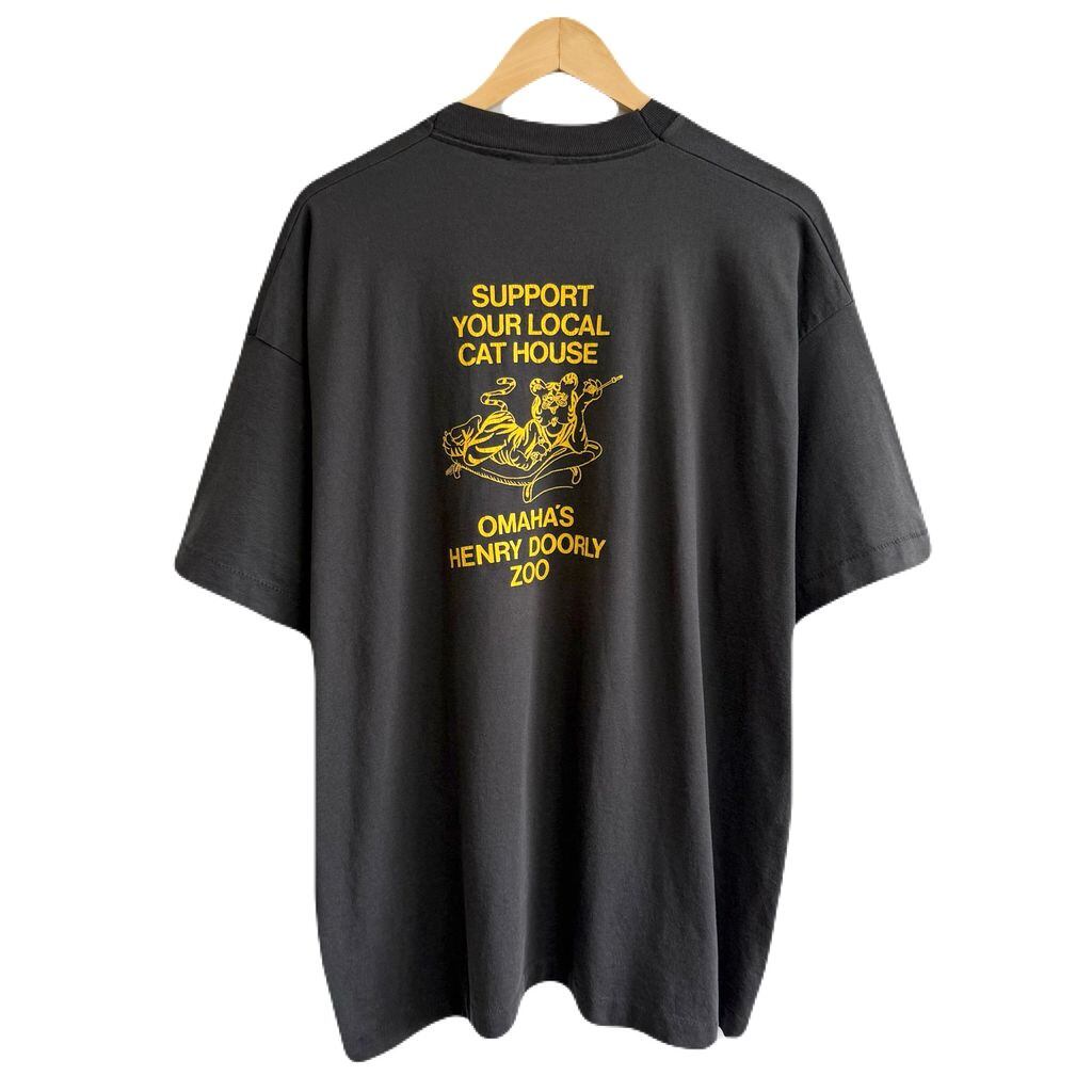 両面プリント トラ アニマルプリント イラスト 足跡 シングルステッチ 半袖Tシャツ チャコールグレー No.G319