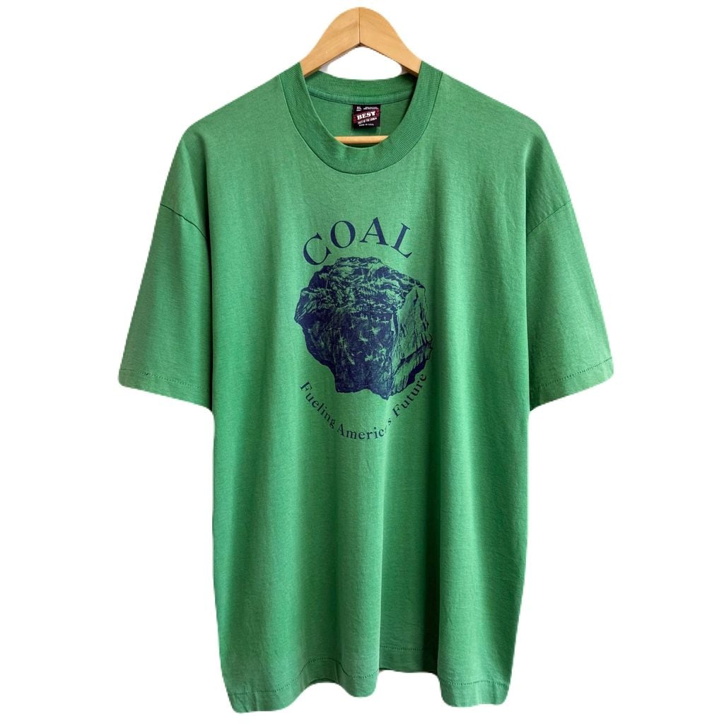 〜90's USA製 FRUIT OF THE LOOM フルーツオブザルーム 石炭Tシャツ 両面プリント シングルステッチ 半袖Tシャツ 緑 グリーン XLサイズ No.G335