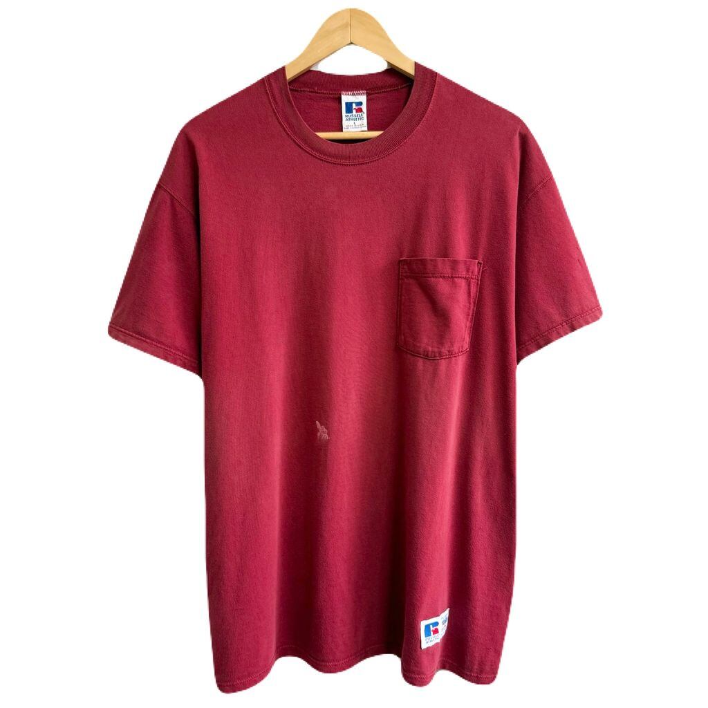 USA製 RUSSELL ATHLETIC ラッセル ペイント ペインター ボロ 無地 胸ポケット付き 半袖Tシャツ エンジ 赤系 Lサイズ No.G336