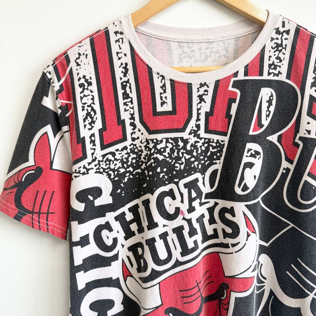 NBA CHICAGO CUBS シカゴカブス 総柄 半袖Tシャツ 白×黒×赤 No.G397