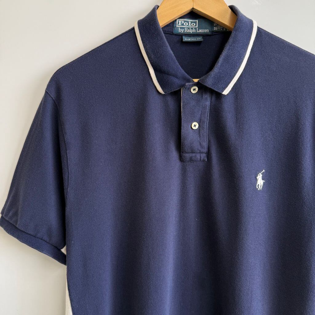 POLO RALPH LAUREN ポロ ラルフローレン ポロシャツ 半袖 ワンポイントロゴ 刺繍 紺×白×赤 XLサイズ No.G406