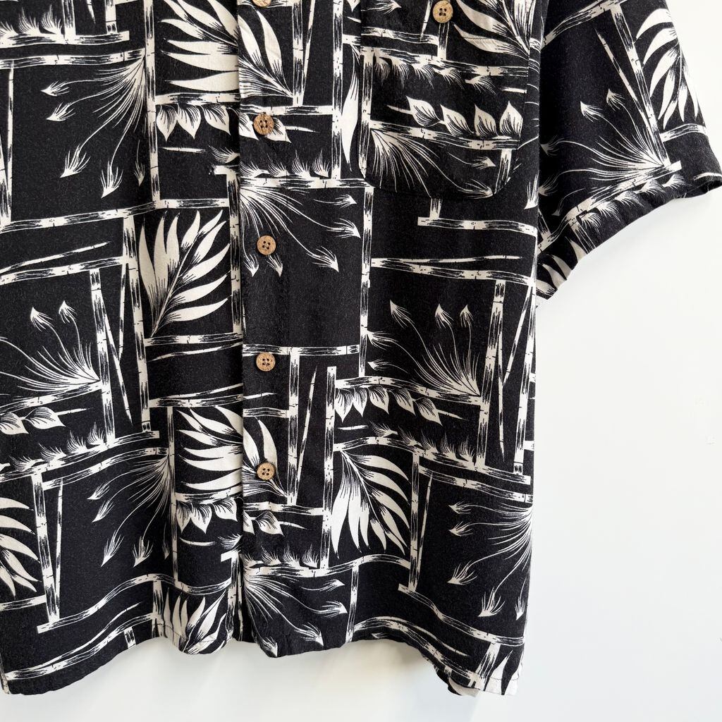 Puritan レーヨンシャツ ボタニカル 植物 リーフ 総柄 柄シャツ デザインシャツ 半袖シャツ 黒×白 Lサイズ No.G410