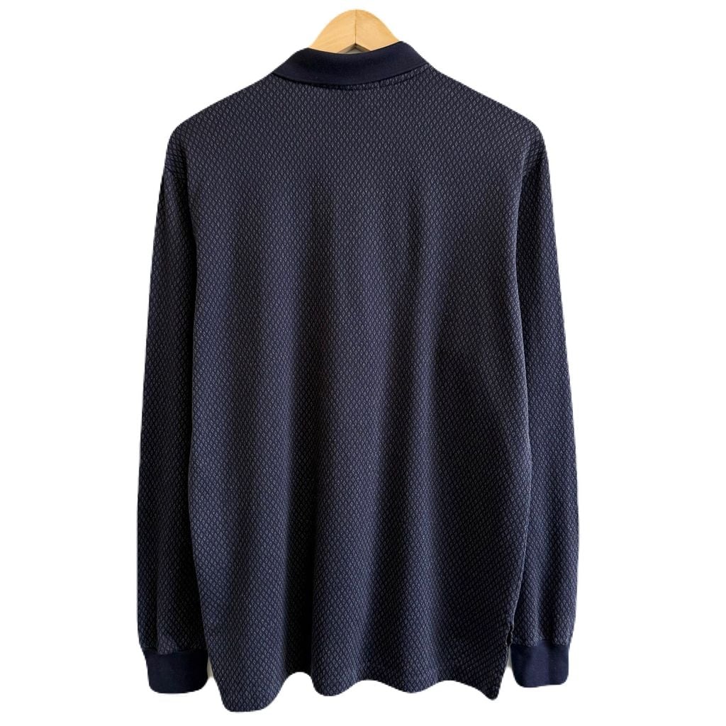 POLO RALPH LAUREN ポロ ラルフローレン ポロシャツ 長袖 総柄 紺×ライトグレー Mサイズ No.G412