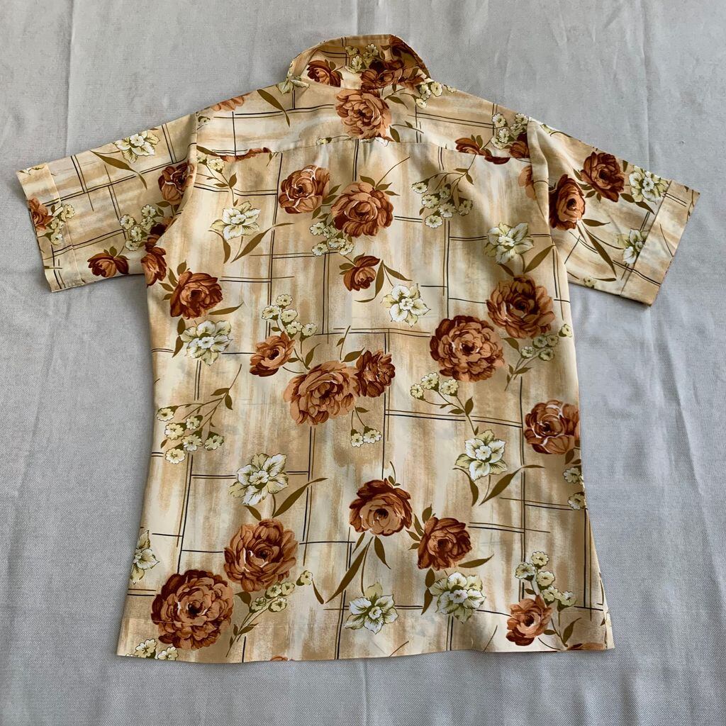 vintage 70s~ アロハ ハワイアン シャツ Aloha HAWAII Shirt オープンカラー 開襟シャツ Beige ベージュ × 花柄 No.I203