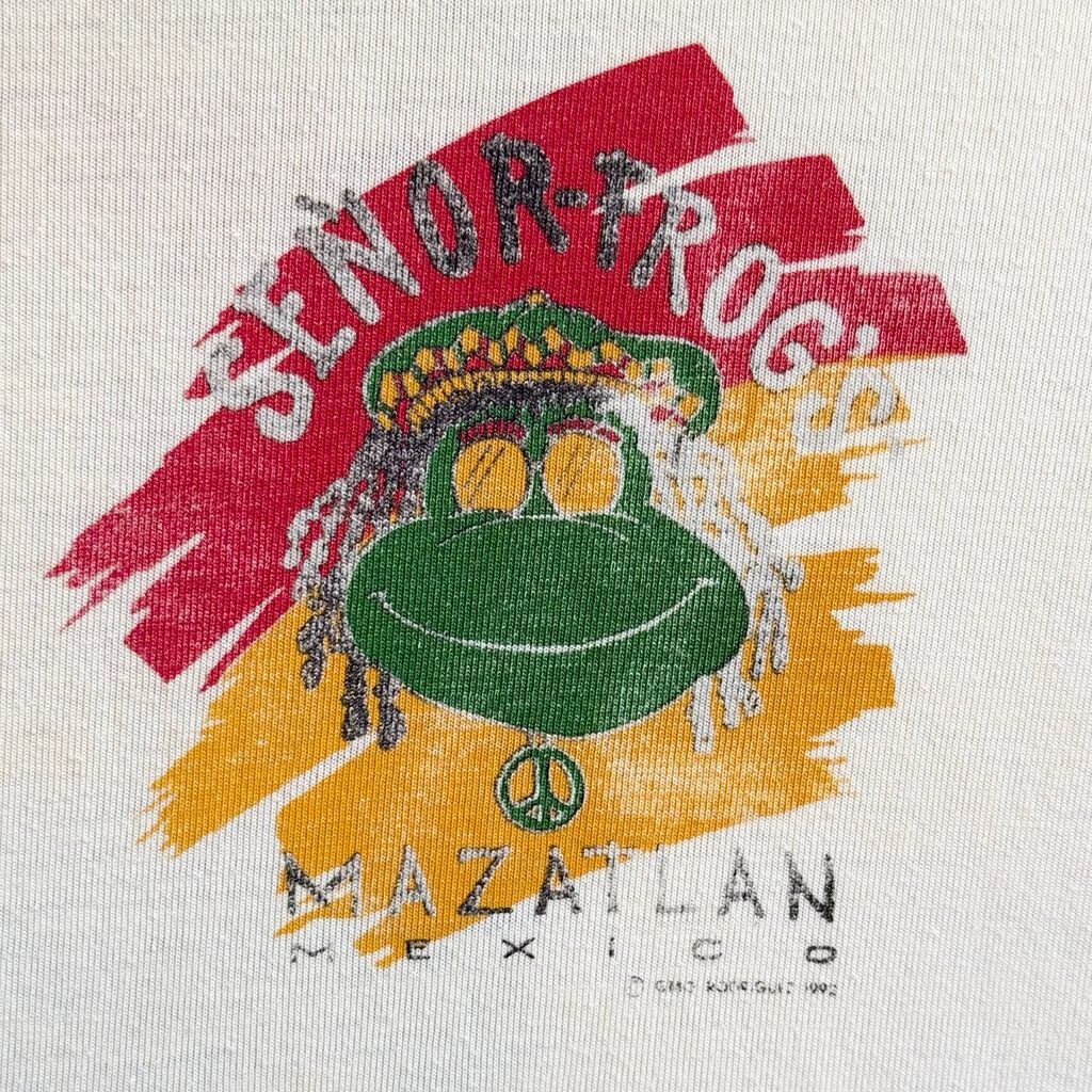 90's señor frog's セニョールフロッグス 両面プリント カエル キャラクター レゲエ シングルステッチ 半袖Tシャツ アイボリー No.G456