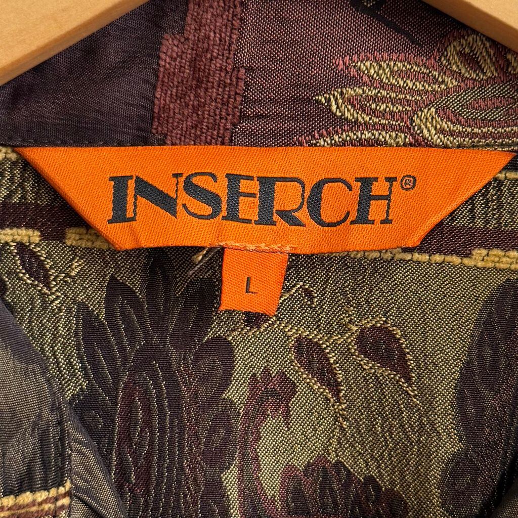 (デッドストック) INSERCH インサーチ 柄×ペイズリー×ボーダー 総柄 柄シャツ デザインシャツ 長袖シャツ ゴールド×ブラウン×ボルドー×多色 Lサイズ No.G459