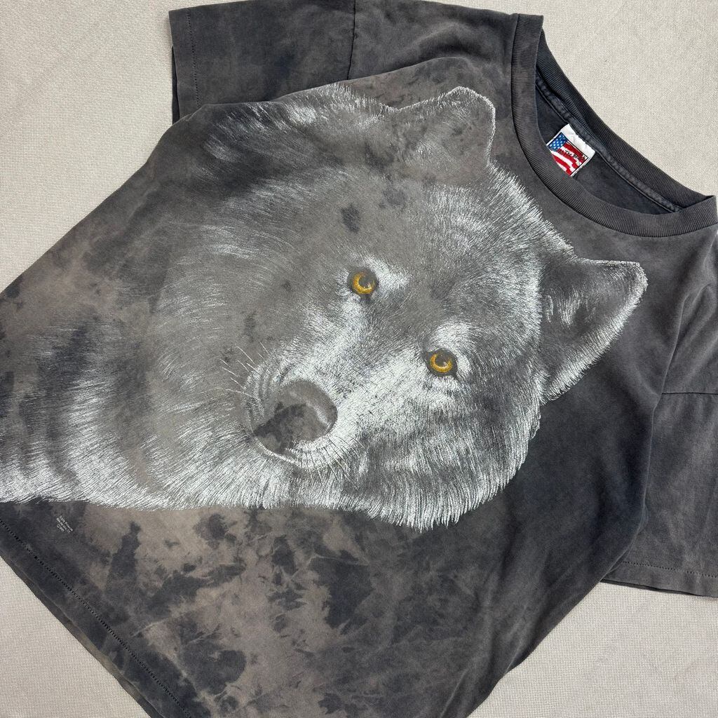 USA製 Made At The Beach 犬 オオカミ アニマル フェード プリント Tシャツ 黒 Lサイズ No.E625