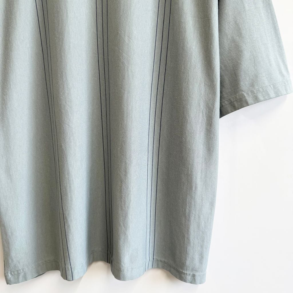 adidas アディダス ストライプ ワンポイントロゴ 刺繍 エンブレム 半袖Tシャツ 緑系×青 Lサイズ No.G509